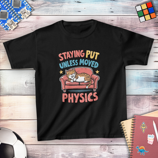 Staying Put Unless Moved Youth T-shirt (Cat Version)