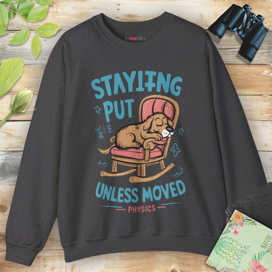 Staying Put Unless Moved Sweatshirt (Dog Version)